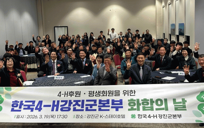 [´º½ºÅë ±è±¤¿ ±âÀÚ]Çѱ¹4-H°Áø±ºº»ºÎ(ȸÀå À±À±±Ù)°¡ Áö³ 19ÀÏ °Áø K-½ºÅ×ÀÌÈ£ÅÚ¿¡¼ ¼±ÈĹè ȸ¿ø°ú Æò»ýȸ¿ø, ÈÄ¿øÈ¸¿øÀÌ ÇÔ²²ÇÏ´Â ¡®2026 ÈÇÕÀÇ ³¯¡¯ Çà»ç¸¦ °³ÃÖÇß´Ù. À̹ø Çà»ç´Â Çѱ¹4-H°Áø±ºº»ºÎ ȸ¿øµéÀÌ ÇÑÀÚ¸®¿¡ ¸ð¿© ±×µ¿¾ÈÀÇ È°µ¿À» µ¹¾Æº¸°í ȸ¿ø °£ ÈÇÕ°ú °á¼ÓÀ» ´ÙÁö±â À§ÇØ ¸¶·ÃµÆ´Ù.