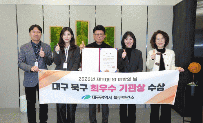 [´º½ºÅë ¾È»óµ· ±âÀÚ]´ë±¸ ºÏ±¸º¸°Ç¼Ò´Â Áö³ 3¿ù 20ÀÏ Ä¥°î°æºÏ´ëÇб³º´¿ø¿¡¼ ¿¸° 'Á¦19ȸ ¾Ï ¿¹¹æÀÇ ³¯ ±â³ä½Ä'¿¡¼ ±¹°¡¾Ï°ËÁø»ç¾÷ ÃÖ¿ì¼ö±â°üÀ¸·Î ¼±Á¤µÅ ´ë±¸±¤¿ª½ÃÀå ǥâÀ» ¹Þ¾Ò´Ù.