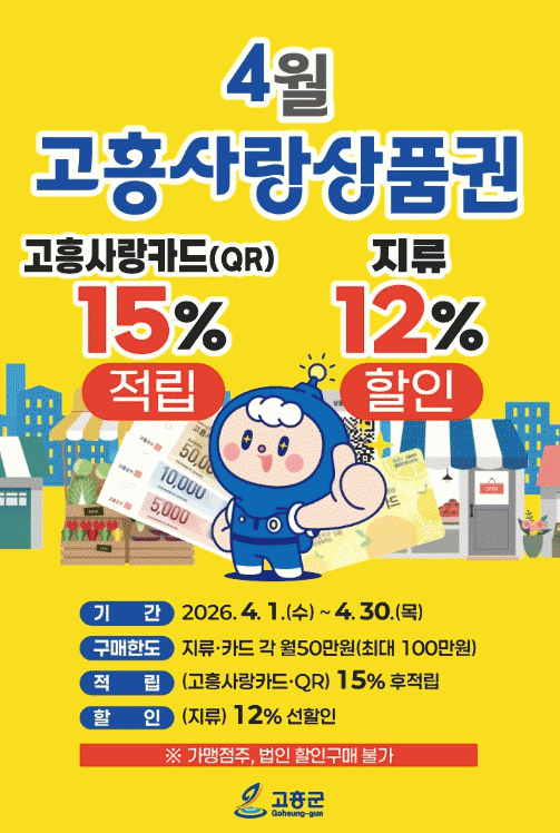 °íÈﱺ, ¡®Áö¿ª°æÁ¦ º½¹Ù¶÷¡¯ 4¿ù °íÈï»ç¶û»óǰ±Ç ÃÖ´ë 15% ÇÒÀÎ