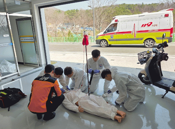Æò°¡´Â Çʱâ(40%)¿Í ½Ç±â(60%)·Î ³ª´² ÁøÇàµÆÀ¸¸ç, ½Ç±â Æò°¡¿¡¼´Â ½ÉÆó¼Ò»ý¼ú(CPR) ¹× ÀÚµ¿½ÉÀåÃæ°Ý±â(AED) »ç¿ë¹ý, Ãʱâ´ëÀÀ ȯÀÚÆò°¡ µî ÇöÀå¿¡¼ Áï°¢ Ȱ¿ë °¡´ÉÇÑ ±â¼úÀÇ ¼÷·Ãµµ¸¦ ÁýÁßÀûÀ¸·Î °ËÁõÇß´Ù.