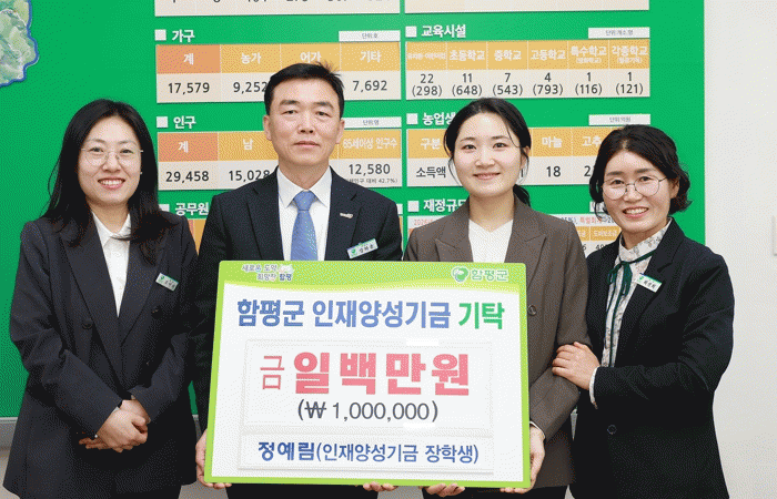 ÇÔÆò±º °ü°èÀÚ´Â ¡°Á¤¿¹¸² ¾¾ÀÇ ±âŹÀº Áö¿ª»çȸ°¡ ÇÔ²² ¸¸µç ÀÎÀç°¡ ´Ù½Ã Áö¿ªÀ» À§ÇØ ±â¿©ÇÏ´Â ¸Å¿ì ¶æ±íÀº »ç·Ê¡±¶ó¸ç ¡°¾ÕÀ¸·Îµµ ÀÎÀç¾ç¼º±â±ÝÀ» ÅëÇØ ´õ ¸¹Àº ÇлýµéÀÌ ²ÞÀ» ÆîÄ¥ ¼ö ÀÖµµ·Ï Áö¿øÀ» ¾Æ³¢Áö ¾Ê°Ú´Ù¡±°í ¸»Çß´Ù.