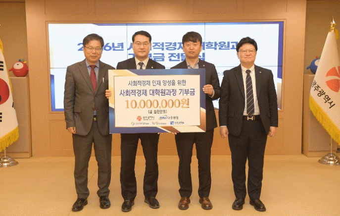 [´º½ºÅë ±è±¤¿ ±âÀÚ]±¤ÁÖÁö¿ª »çȸÀû±â¾÷ÀÎ ¢ß´Ù¿ìȯ°æÀÌ ±¤Áֽð¡ ÃßÁø ÁßÀÎ ¡®»çȸÀû°æÁ¦ ´ëÇпø°úÁ¤ Áö¿ø»ç¾÷¡¯À» ÈÄ¿øÇÏ´Â ±âºÎ±ÝÀ» Àü´ÞÇß´Ù.