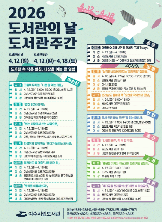 ¿©¼ö½Ã¸³µµ¼°ü, µµ¼°ü¿¡¼ ¸¸³ª´Â Ưº°ÇÑ ÀÏÁÖÀÏ ¡®µµ¼°üÁÖ°£¡¯ ¿î¿µ