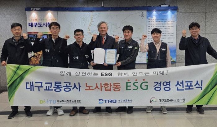 [´º½ºÅë ¾È»óµ· ±âÀÚ] ´ë±¸±³Åë°ø»ç´Â Áö³ 3¿ù 27ÀÏ ³ë»ç ´ëÇ¥°¡ Âü¿©ÇÑ °¡¿îµ¥ ¡®³ë»çÇÕµ¿ ESG °æ¿µ ½Çõ ¼±¾ð¹®¡¯ ¼¸í½ÄÀ» ¿°í ESG °æ¿µÀ» °øµ¿ ÃßÁøÇϱâ·Î Çß´Ù.