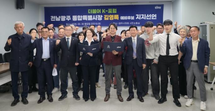 ¿øÁ¶ Ä£¸í Á¶Á÷ÀÎ ¡®´õºÒ¾îK Æ÷·³¡¯ ȸ¿øµéÀÌ 30ÀÏ ±è¿µ·Ï ¹ÎÁÖ´ç Àü³²±¤ÁÖÆ¯º°½ÃÀå ¿¹ºñÈĺ¸¿¡ ´ëÇÑ ÁöÁö¸¦ ¼±¾ðÇϰí ÀÖ´Ù.