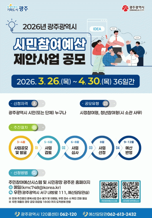 ±¤ÁÖ±¤¿ª½Ã, 4¿ù30ÀϱîÁö ¡®½Ã¹ÎÂü¿©¿¹»ê Á¦¾È¡¯ °ø¸ð