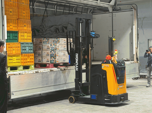 ÇöÀå¿¡¼´Â ¹«ÀÎÁö°ÔÂ÷ 1±â, Àú»óÇü ÀÚÀ²À̵¿·Îº¿(AMR) 1±â, û¼Ò ¹× °æºñ·Îº¿ 1±â µî ÃÑ 3±âÀÇ Ã·´Ü Àåºñ°¡ ÅõÀԵǾî À¯±âÀûÀ¸·Î Çù¾÷ÇÏ´Â ÀÚµ¿È ½ÃÄö½º¸¦ ¼±º¸¿´´Ù. ¿îÀüÀÚ°¡ ¾ø´Â Áö°ÔÂ÷°¡ ³ó»ê¹° ÆÄ·¿Æ®ÀÇ À§Ä¡¸¦ Á¤È®È÷ ÀνÄÇØ Æ®·°¿¡¼ ÇÏ¿ªÇϸé, Àڱ⠹«°ÔÀÇ ¼ö½Ê ¹è¸¦ ÀûÀçÇÒ ¼ö ÀÖ´Â AMRÀÌ À̸¦ ³Ñ°Ü¹Þ¾Æ °æ¸ÅÀå ³» ¸ñÇ¥ ±¸¿ªÀ¸·Î ¸Å²ô·´°Ô ¿î¹ÝÇß´Ù. ¿î¹ÝÀÌ ³¡³ ÁÖº¯Àº û¼Ò·Îº¿ÀÌ Áï°¢ÀûÀ¸·Î ¸ÕÁö ÈíÀÔ°ú ¹°Ã»¼Ò¸¦ ¼öÇàÇØ Âü¼®ÇÑ À¯ÅëÀεéÀÇ È£ÀÀÀ» ¾ò¾î³Â´Ù.