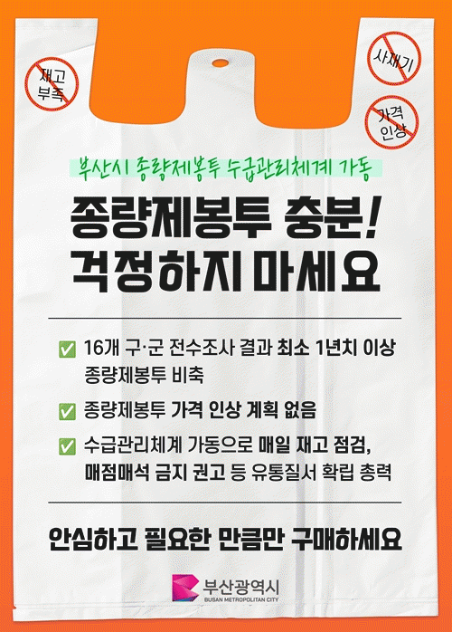 [´º½ºÅë °û¸íÈÆ ±âÀÚ] ºÎ»ê½Ã´Â ÃÖ±Ù Á¾·®Á¦ºÀÅõ ¼ö±Þ°ú °ü·ÃÇÑ ½Ã¹Î ºÒ¾ÈÀ» ÇØ¼ÒÇϱâ À§ÇØ Áö³ 3¿ù 26ÀϺÎÅÍ 'Á¾·®Á¦ºÀÅõ ºñ»ó °ü¸®Ã¼°è'¸¦ °¡µ¿ÇÏ¿© ¸ÅÀÏ 16°³ ±¸¡¤±ºÀÇ Àç°í ÇöȲÀ» ÆÄ¾ÇÇϰí ÇöÀåÁ¡°ËÀ» ½Ç½ÃÇÏ´Â µî Á¾·®Á¦ºÀÅõÀÇ ¿øÈ°ÇÑ ¼ö±Þ¿¡ ¸¸ÀüÀ» ±âÇϰí ÀÖ´Ù°í ¹àÇû´Ù.