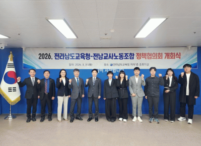 [´º½ºÅë ±è±¤¿ ±âÀÚ]Àü¶ó³²µµ±³À°Ã»°ú Àü³²±³»ç³ëµ¿Á¶ÇÕÀº 3¿ù 31ÀÏ Ã»»ç ÁßȸÀǽǿ¡¼ ¡®2026³â Á¤Ã¥ÇùÀÇȸ °³È¸½Ä¡¯À» °®°í ±³À° Çö¾È¿¡ ´ëÇÑ ÇØ¹ý ¸ð»ö¿¡ ³ª¼¹´Ù.