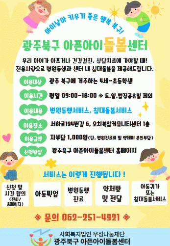 ±¤ÁÖ±¤¿ª½Ã ºÏ±¸, ±¤ÁÖ ÃÖÃÊ ¾ÆÇ¾ÆÀÌ µ¹º½¼¾ÅÍ °³¼Ò...º´¿øµ¿Çà ¼ºñ½º º»°Ý ÃßÁø