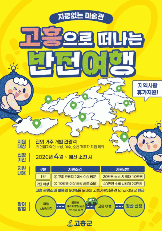 [´º½ºÅë ±è±¤¿ ±âÀÚ] °íÈﱺÀÌ ¹®ÈüÀ°°ü±¤ºÎ¿Í Çѱ¹°ü±¤°ø»ç°¡ ÁÖ°üÇÏ´Â ¡®2026 Áö¿ª»ç¶û ÈÞ°¡Áö¿ø ½Ã¹ü»ç¾÷¡¯ ´ë»óÁö·Î ÃÖÁ¾ ¼±Á¤µÊ¿¡ µû¶ó, 4¿ù 1ÀϺÎÅÍ »ç¾÷À» ½ÃÇàÇÏ°í º»°ÝÀûÀÎ Âü°¡ ½ÅûÀ» ¹Þ´Â´Ù.