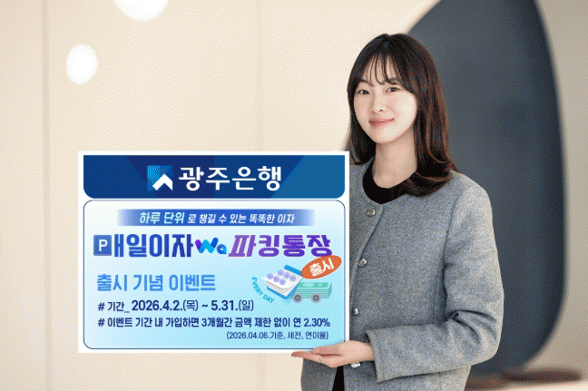 ÀÌ¿Í ÇÔ²² ±¤ÁÖÀºÇàÀº »óǰ Ãâ½Ã¸¦ ±â³äÇØ Ãß°¡ ¿ì´ë±Ý¸® À̺¥Æ®µµ ÁøÇàÇÑ´Ù. 2026³â 4¿ù 2ÀϺÎÅÍ 5¿ù 31ÀϱîÁö °¡ÀÔÇÑ °í°´À» ´ë»óÀ¸·Î °¡ÀÔÀϷκÎÅÍ 3°³¿ù µ¿¾È ÀϺ° ÃÖÁ¾ ÀÜ¾× 3õ¸¸¿ø ÀÌÇÏ ±Ý¾×¿¡ ´ëÇØ ¿¬ 0.50%p(Æ÷ÀÎÆ®)ÀÇ ¿ì´ë±Ý¸®¸¦ Ãß°¡ Á¦°øÇÑ´Ù. ÀÌ¿¡ µû¶ó À̺¥Æ® ±â°£ ³» °¡ÀÔ °í°´Àº °¡ÀÔÀϷκÎÅÍ 3°³¿ù µ¿¾È ±Ý¾× ±¸°£°ú °ü°è¾øÀÌ ÃÖ´ë ¿¬ 2.30%ÀÇ ±Ý¸®¸¦ Àû¿ë¹ÞÀ» ¼ö ÀÖ´Ù.