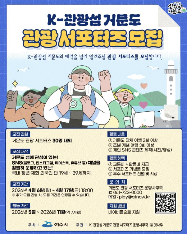 Áö¿øÀ» Èñ¸ÁÇϴ û³âÀº ¿À´Â 4¿ù 6ÀϺÎÅÍ 17ÀÏ ¿ÀÈÄ 6½Ã±îÁö °¡´ÉÇÏ¸ç ½Åû ¹æ¹ý°ú ÀÚ¼¼ÇÑ »çÇ×Àº °Å¹®µµ °ü±¤ °ø½Ä SNS ä³Î(ÀνºÅ¸±×·¥, ÆäÀ̽ººÏ)À» ÅëÇØ È®ÀÎÇÒ ¼ö ÀÖ´Ù.