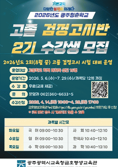 [Æ÷½ºÅÍ] ±¤ÁÖ ±ÝÈ£Æò»ý±³À°°ü, ¡®°íÁ¹ °ËÁ¤°í½Ã¹Ý¡¯ 2±â ¿î¿µ