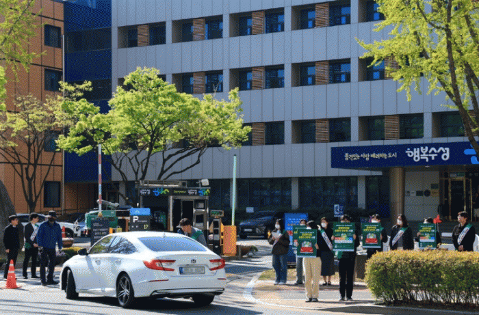 ¼ö¼º±¸´Â 8ÀÏ ±¸Ã» ÁÖÂ÷Àå ÀÔ±¸¿¡¼ ¹æ¹® ¹Î¿øÀÎÀ» ´ë»óÀ¸·Î ¾È³»¹®À» ¹èºÎÇϰí, Á¦µµÀÇ ÃëÁö¿Í Âü¿© ¹æ¹ýÀ» ¾È³»Çß´Ù.