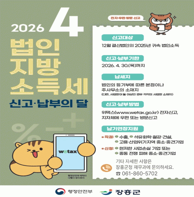 [´º½ºÅë ±è±¤¿ ±âÀÚ] Àü³² ÀåÈﱺÀº 4¿ù ÇÑ ´Þ µ¿¾È 2025³â 12¿ù ¸» °á»ê¹ýÀÎÀÇ ¹ýÀμҵ濡 ´ëÇÑ ¹ýÀÎÁö¹æ¼Òµæ¼¼ ÁýÁß ½Å°í¡¤³³ºÎ ±â°£À» ¿î¿µÇÑ´Ù°í 9ÀÏ ¹àÇû´Ù.