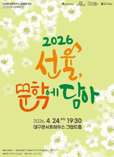 ´ë±¸ÄܼƮÇϿ콺´Â ´ë±¸¹®Çаü°ú ÇÔ²² ¡®2026 ´ë±¸¹®ÇÐÁÖ°£¡¯À» ¸Â¾Æ ¿À´Â 4¿ù 24ÀÏ ¿ÀÈÄ 7½Ã 30ºÐ ±×·£µåȦ¿¡¼ Ưº°¿¬ÁÖȸ ¡®¼±À², ¹®Çп¡ ´ã¾Æ¡¯¸¦ °øµ¿ °³ÃÖÇÑ´Ù.