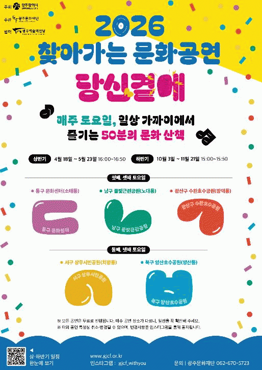 ¿¬°£ °ø¿¬ ÀÏÁ¤Ç¥´Â ±¤ÁÖ¹®ÈÀç´Ü ȨÆäÀÌÁö¿¡¼ È®ÀÎÇÒ ¼ö ÀÖÀ¸¸ç, ¾ß¿Ü °ø¿¬ Ư¼º»ó ÀÏÁ¤Àº ±â»ó »óȲ¿¡ µû¶ó º¯°æµÉ ¼ö ÀÖ´Ù.
