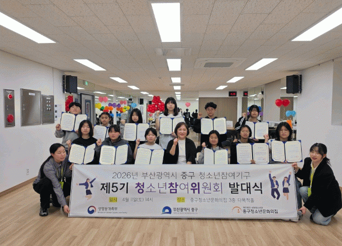[´º½ºÅë °û¸íÈÆ ±âÀÚ] ºÎ»ê Áß±¸Ã»¼Ò³â¹®ÈÀÇÁýÀº Áö³ 11ÀÏ, Áö¿ª û¼Ò³âµéÀÇ ±ÇÀÍ ÁõÁø°ú Á¤Ã¥ Âü¿©¸¦ À̲ø¾î°¥ ¡®Á¦5±â û¼Ò³âÂü¿©À§¿øÈ¸¡¯ÀÇ ¹ß´ë½ÄÀ» °³ÃÖÇÏ°í º»°ÝÀûÀΠȰµ¿À» ½ÃÀÛÇß´Ù°í ¹àÇû´Ù.