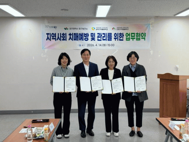 [´º½ºÅë ¾È»óµ· ±âÀÚ]´ë±¸µ¿±¸º¸°Ç¼Ò´Â Áö³ 14ÀÏ, Áö¿ª ³» Ä¡¸Å ³ëÀÎ µ¹º½ Àü¹®±â°üÀÎ ¼º´ö±â¾ïµ¹º½Çб³, Áø¸í±â¾ïµ¹º½Çб³¿Í Ä¡¸Å¿¹¹æ ¹× ÅëÇÕÀû Ä¡¸Å °ü¸® ü°è ±¸ÃàÀ» À§ÇÑ ¾÷¹«Çù¾àÀ» ü°áÇß´Ù.