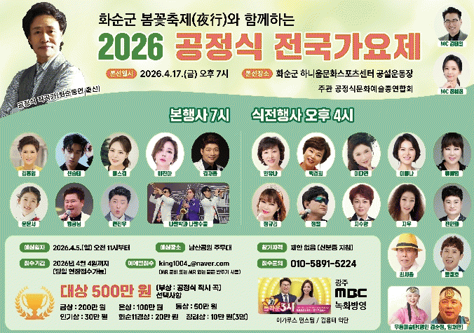 À̹ø °¡¿äÁ¦´Â ¡®2026 ȼø º½²É ÃàÁ¦¡¯¿Í ¿¬°èÇØ ÃÑ 2ºÎ·Î ³ª´² ÁøÇàµÈ´Ù. 16½Ã¿¡ ½ÃÀ۵Ǵ 1ºÎ¿¡¼´Â Áö¿ª °¡¼öµéÀÇ °ø¿¬À¸·Î ÃàÁ¦ ºÐÀ§±â¸¦ ÇÑÃþ ²ø¾î¿Ã¸®°í, 18½ÃºÎÅÍ´Â º½²É ÃàÁ¦ »çÀü °ø¿¬°ú °³¸·½ÄÀÌ À̾îÁ® ´Ù¾çÇÑ º¼°Å¸®¸¦ Á¦°øÇÒ ¿¹Á¤ÀÌ´Ù.
