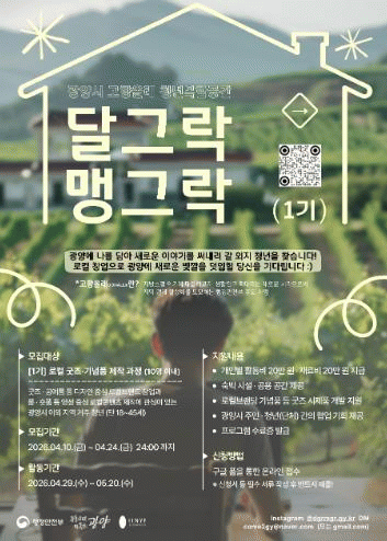 [´º½ºÅë ±è±¤¿ ±âÀÚ]±¤¾ç½Ã´Â û³âº¹ÇÕ°ø°£ °³¼Ò¿¡ ¾Õ¼ 4¿ù 10ÀϺÎÅÍ 24ÀϱîÁö û³â â¾÷ ÇÁ·Î±×·¥ ¡®Ã»³â â¾÷ ´Þ±×¶ô ¸Í±×¶ô 1±â¡¯ Âü¿©ÀÚ¸¦ ¸ðÁýÇÑ´Ù.