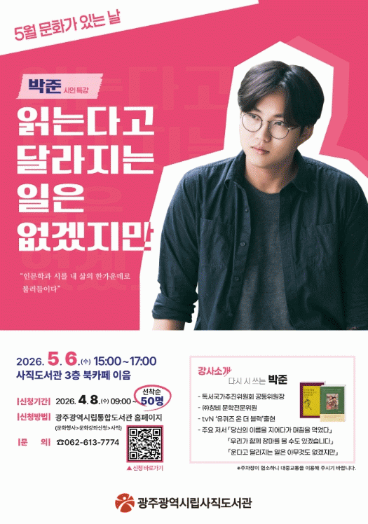 [´º½ºÅë ±è±¤¿ ±âÀÚ] ±¤ÁÖ±¤¿ª½Ã »çÁ÷µµ¼°üÀº 5¿ù ¡®¹®È°¡ ÀÖ´Â ³¯¡¯À» ¸Â¾Æ ¿À´Â 5¿ù 6ÀÏ ºÏÄ«Æä ÀÌÀ½¿¡¼ ¡®¹ÚÁØ ½ÃÀÎ ÃÊû Ưº°°¿¬¡¯À» ¿¬´Ù.