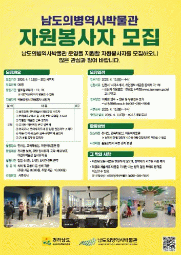 [´º½ºÅë ±è±¤¿ ±âÀÚ]Àü¶ó³²µµ°¡ ³²µµÀǺ´¿ª»ç¹Ú¹°°ü ¿î¿µÀ» Áö¿øÇÒ Àü½Ã¡¤±³À°¡¤Ã¼Çè ºÐ¾ß ÀÚ¿øºÀ»çÀÚ¸¦ ¸ðÁýÇÑ´Ù.