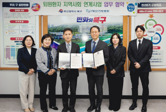 [´º½ºÅë °û¸íÈÆ ±âÀÚ] ºÎ»ê ºÏ±¸´Â Áö³ 15ÀÏ Åð¿øÈ¯ÀÚÀÇ ¾ÈÁ¤ÀûÀÎ Áö¿ª»çȸ º¹±Í¿Í Áö¼ÓÀûÀÎ °Ç°°ü¸®¸¦ Áö¿øÇϱâ À§ÇØ È¸íÀϽű⵶º´¿ø(È¸íµ¿)°ú ¡®Åð¿øÈ¯ÀÚ Áö¿ª»çȸ ¿¬°è»ç¾÷¡¯ ÃßÁøÀ» À§ÇÑ ¾÷¹«Çù¾àÀ» ü°áÇß´Ù°í ¹àÇû´Ù.