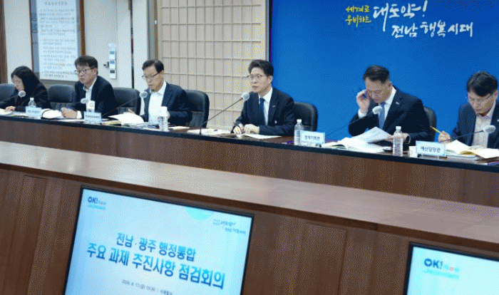 [´º½ºÅë ±è±¤¿ ±âÀÚ]Àü¶ó³²µµ´Â 17ÀÏ µµÃ» ¼ÀçÇʽǿ¡¼ Àü³²¡¤±¤ÁÖ ÇàÁ¤ÅëÇÕ ÁÖ¿ä °úÁ¦ ÃßÁø»óÇ× Á¡°ËȸÀǸ¦ ¿¾î ¿À´Â 7¿ù 1ÀÏ Ãâ¹üÇÏ´Â Àü³²±¤ÁÖÅëÇÕÆ¯º°½ÃÀÇ ¼º°øÀû ź»ý¿¡ ÃÑ·ÂÀ» ±â¿ïÀ̱â·Î Çß´Ù.