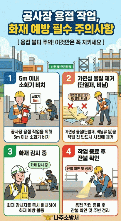 ½ÅÇâ½Ä ³ªÁÖ¼ÀåÀº ¡°°ø»çÀå °ü°èÀںеéÀº ¼ÒȱâºñÄ¡, °¨½ÃÀÚ¹èÄ¡, ÀÛ¾÷ ÈÄ ÀÛºÒ È®ÀÎ µî ±âº»ÀûÀÎ ¾ÈÀü¼öÄ¢À» ¹Ýµå½Ã ÁؼöÇØ ÈÀ翹¹æ¿¡ Èû½á ÁÖ½Ã±æ ¹Ù¶õ´Ù¡±°í ¸»Çß´Ù.