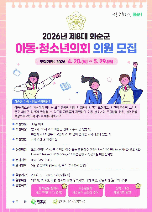 [´º½ºÅë ±è±¤¿ ±âÀÚ]ȼø±ºÀº ¡®2026³â Á¦8´ë ȼø±º ¾Æµ¿¡¤Ã»¼Ò³âÀÇȸ¡¯ ÀÇ¿ø 30¸íÀ» ¿À´Â 4¿ù 20ÀϺÎÅÍ 5¿ù 29ÀϱîÁö °ø°³ ¸ðÁýÇÑ´Ù°í ¹àÇû´Ù.