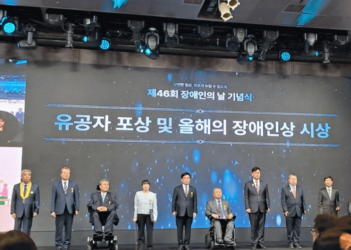 [´º½ºÅë ±è±¤¿ ±âÀÚ]Àü¶ó³²µµ´Â Á¦46ȸ Àå¾ÖÀÎÀÇ ³¯(4¿ù 20ÀÏ)À» ¸Â¾Æ ½Ç½ÃµÈ Á¤ºÎÆ÷»ó¿¡¼ ÈÆÀå 1¸í, ±¹¹ÎÆ÷Àå 2¸í, º¸°Çº¹ÁöºÎ Àå°ü ǥâ 4¸í µî ÃÑ 7¸íÀÌ ¼±Á¤µÅ ¿ª´ë ÃÖ´Ù ¼ö»ó ¼º°ú¸¦ °Åµ×´Ù°í ¹àÇû´Ù.