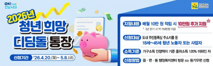 Àü³²µµ, ¸Å´Þ 10¸¸¿ø ÀúÃà½Ã 10¸¸¿ø Ãß°¡¡¦3³â ÃÖ´ë 750¸¸¿ø ¸ñµ·