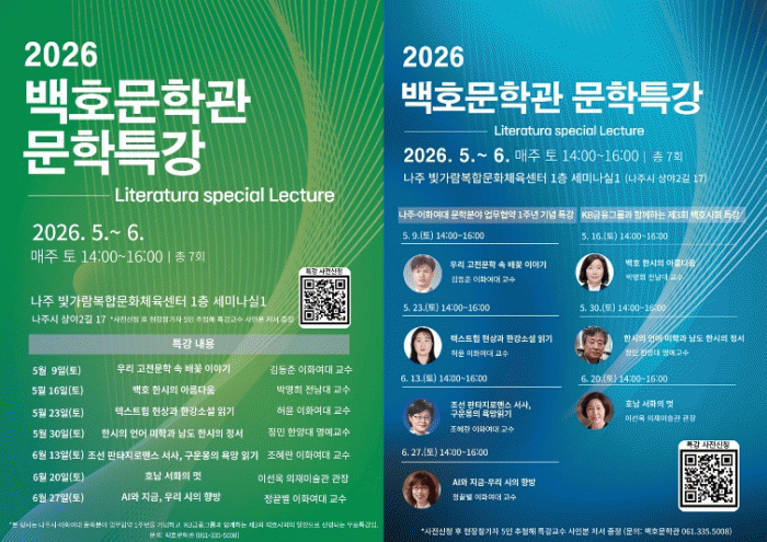 [´º½ºÅë ±è±¤¿ ±âÀÚ]Àü³² ³ªÁֽð¡ ¹éÈ£¹®Çаü¿¡¼ ÀÌÈ¿©ÀÚ´ëÇб³¿Í ÇÔ²² °íÀüºÎÅÍ Çö´ë, ¹Ì·¡ ¹®ÇбîÁö ¾Æ¿ì¸£´Â K-¹®ÇÐÆ¯°À» ¿î¿µÇÏ¸ç ½Ã¹Î ´ë»ó ¹®ÇÐ ÇâÀ¯ ±âȸ¸¦ È®´ëÇÑ´Ù.