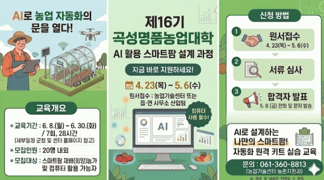 [´º½ºÅë ±è±¤¿ ±âÀÚ] Àü³² °î¼º±ºÀÌ ¹Ì·¡ ³ó¾÷À» ¼±µµÇÒ ½º¸¶Æ®³ó¾÷ Àü¹®°¡ À°¼ºÀ» À§ÇØ ¡®Á¦16±â °î¼º¸íǰ³ó¾÷´ëÇÐ AI Ȱ¿ë ½º¸¶Æ®ÆÊ ¼³°è °úÁ¤¡¯À» ¿î¿µÇÑ´Ù°í 24ÀÏ ¹àÇû´Ù.