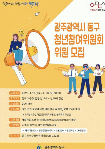 ±¤ÁÖ±¤¿ª½Ã µ¿±¸ 30ÀϱîÁö Á¦6±â û³âÂü¿©À§¿øÈ¸ À§¿ø ¸ðÁý