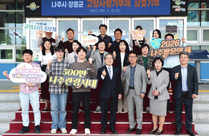 [´º½ºÅë ±è±¤¿ ±âÀÚ]Àü³² ³ªÁÖ½Ã¿Í ÀåÈﱺÀÌ °íÇâ»ç¶û±âºÎÁ¦ Ȱ¼ºÈ¿Í Áö¿ª °£ »ó»ý ¹ßÀüÀ» À§ÇØ ¼ÕÀ» ¸ÂÀâ¾Ò´Ù.