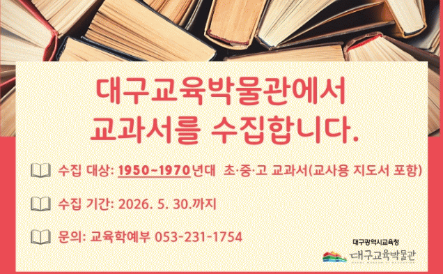 À̹ø ±³°ú¼ ¼öÁýÀº ´ë±¸Áö¿ª ±³À°ÀÇ ¿ª»çÀû º¯ÃµÀ» ±â·ÏÇϰí, ±³°ú¼ÀÇ º¯È °úÁ¤À» ÅëÇØ ¹Ì·¡ ±³À°ÀÇ ¹æÇâÀ» ¸ð»öÇϱâ À§ÇÑ ÃëÁö¿¡¼ ¸¶·ÃµÆ´Ù.