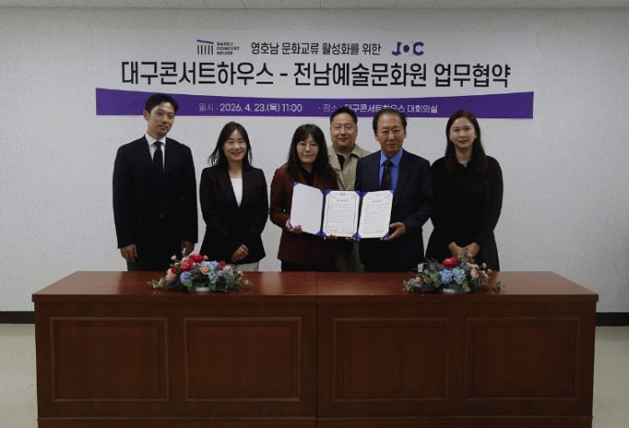 [´º½ºÅë ¾È»óµ· ±âÀÚ]´ë±¸¹®È¿¹¼úÁøÈï¿ø ´ë±¸ÄܼƮÇϿ콺´Â 4¿ù 23ÀÏ Àü³²¿¹¼ú¹®È¿ø(´ëÇ¥ ¸¶À±¹Ì)°ú ¿µÈ£³² ¹®È±³·ù Ȱ¼ºÈ¸¦ À§ÇÑ ¾÷¹«Çù¾àÀ» ü°áÇß´Ù.