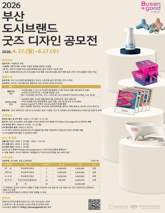 [´º½ºÅë °û¸íÈÆ ±âÀÚ] ºÎ»ê½Ã¿Í (Àç)ºÎ»êµðÀÚÀÎÁøÈï¿øÀº ¿À´Ã(27ÀÏ)ºÎÅÍ 6¿ù 17ÀϱîÁö '2026 ºÎ»ê µµ½Ãºê·£µå ±ÂÁî(»óǰ) µðÀÚÀÎ °ø¸ðÀü'À» °³ÃÖÇÑ´Ù°í ¹àÇû´Ù.