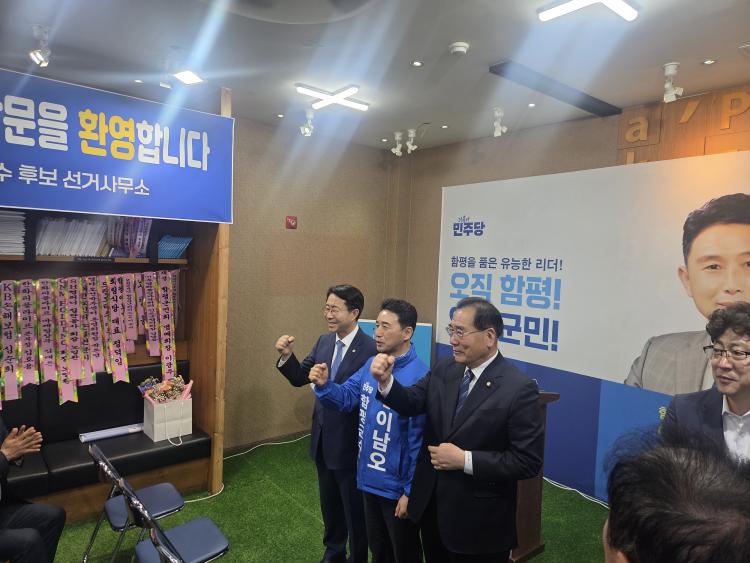 25ÀÏ ´õºÒ¾î¹ÎÁÖ´ç ÇÔÆòÁö¿ªÀ§¿ø¿¡¼ (¿ÞÂʺÎÅÍ)Á¶Á¤½Ä Á¤¹«Æ¯º¸,À̳²¿À Èĺ¸,À̰³È£ ÀÇ¿øÀÌ ±â³ä ÃÔ¿µÀ» Çϸç Áö¹æ¼±°Å ½Â¸®À» ´ÙÁüÇϰí ÀÖ´Ù.