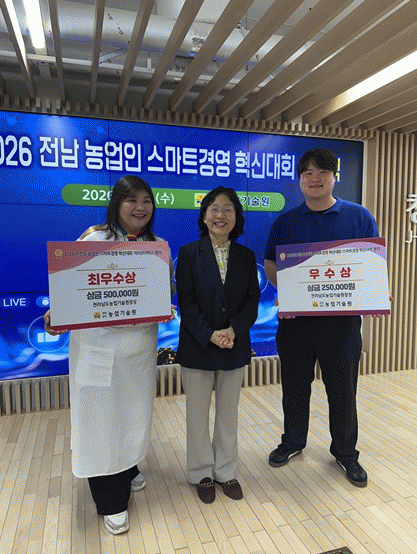 Áö³ 22ÀÏ ¼ö°æ´ç ÀÌäÀ² ´ëÇ¥¿Í µ¿È£¶û À̵¿È£ ´ëÇ¥°¡ ¡®Àü³² ³ó¾÷ÀÎ ½º¸¶Æ® °æ¿µ Çõ½Å´ëȸ¡¯¿¡¼ ¼ö»óÇß´Ù.