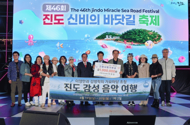 [´º½ºÅë ±è±¤¿ ±âÀÚ] Áö³ 19ÀÏ Áøµµ±º ö¸¶±¤Àå¿¡¼ ¿¸° Áøµµ ½ÅºñÀÇ ¹Ù´å±æ ÃàÁ¦ ¡®¹Ì¶óŬ ÄܼƮ¡¯ Çà»ç¿¡¼ ¼¿ï ÀºÆòÄ¡°úÀÇ ´ëÇ¥¿øÀåÀÎ ÀÌ¿µ¸¸ ¹Ú»ç°¡ °íÇâ»ç¶û±âºÎ±Ý 100¸¸ ¿øÀ» ±âºÎÇß´Ù.