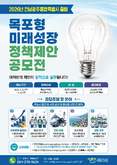 [´º½ºÅë ±è±¤¿ ±âÀÚ]¸ñÆ÷½Ã°¡ Àü³²¡¤±¤ÁÖ ÅëÇÕÆ¯º°½Ã Ãâ¹ü¿¡ ´ëºñÇϰí Áö¿ªÀÇ ¹Ì·¡ ¼ºÀ嵿·ÂÀ» ¹ß±¼Çϱâ À§ÇØ ¡®¸ñÆ÷Çü ¹Ì·¡¼ºÀå Á¤Ã¥Á¦¾È °ø¸ðÀü¡¯À» °³ÃÖÇÑ´Ù.