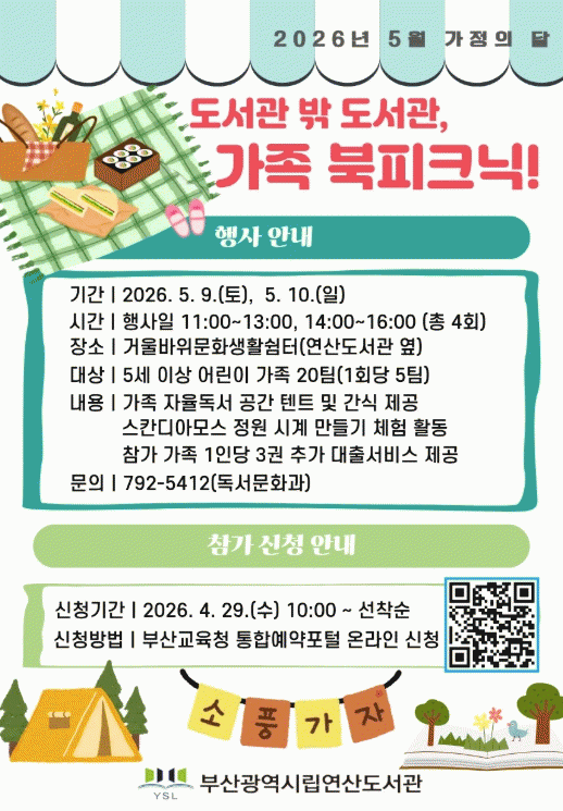 [´º½ºÅë °û¸íÈÆ ±âÀÚ] ºÎ»ê±¤¿ª½Ã¸³¿¬»êµµ¼°üÀº ´ÙÀ½´Þ 9ÀϺÎÅÍ 10ÀϱîÁö ÀÌÆ²°£ µµ¼°ü ¿· °Å¿ï¹ÙÀ§¹®È»ýȰ½°ÅÍ¿¡¼ 5¼¼ ÀÌ»ó ¾î¸°À̸¦ µ¿¹ÝÇÑ °¡Á· 20ÆÀÀ» ´ë»óÀ¸·Î ¡®µµ¼°ü ¹Û µµ¼°ü, °¡Á· ºÏÇÇÅ©´Ð!¡¯ Çà»ç¸¦ ¿î¿µÇÑ´Ù.