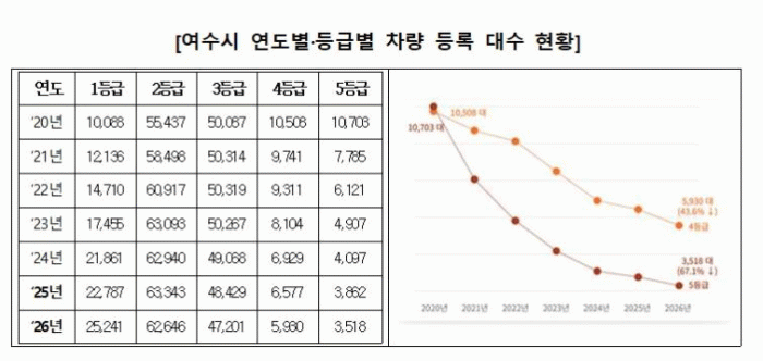 ¿©¼ö½Ã, Á¶±âÆóÂ÷ Áö¿ø´ë»óÀÚ ¼±Á¤¡¦ 4¡¤5µî±Þ Â÷·® °¨Ãà ¼Óµµ