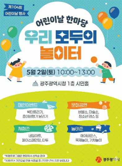 ±¤ÁÖ±¤¿ª½Ã, 5¿ù2ÀÏ ½Ã¹ÎȦ¼ ¾î¸°À̳¯ ÃàÁ¦ ¿¬´Ù