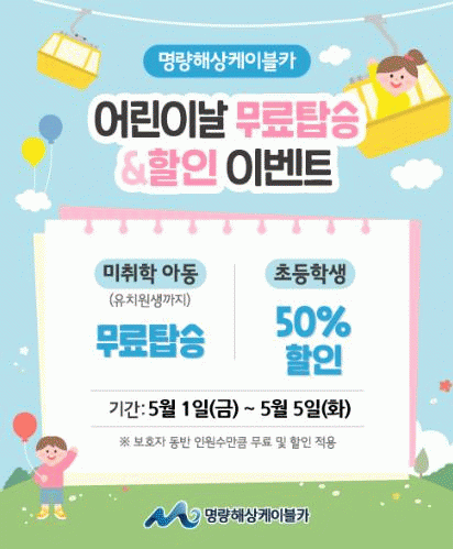 ƯÈ÷ Àü³² ÇØ³²°ú Áøµµ¿¡ ¾ÆÀ̵éÀÌ ÁÁ¾ÆÇÒ¸¸ÇÑ 5¿ù ÃàÁ¦µé°ú ´Ù¾çÇÑ °ü±¤Áö°¡ ÀÖ¾î °¡Á·´ÜÀ§ °ü±¤°´µé¿¡°Ô °ü½ÉÀÌ ¸ð¾ÆÁö°í Àִµ¥, ¸í·®ÇØ»óÄÉÀ̺íÄ«¿¡¼´Â 5¿ù 1ÀϺÎÅÍ 5ÀϱîÁö 5Àϰ£, ¾î¸°ÀÌ °ü±¤°´µéÀ» À§ÇÑ ±ô¦ ¼±¹°À» ÁغñÇߴµ¥, ±â°£µ¿¾È ¸í·®ÇØ»óÄÉÀ̺íÄ«¸¦ ¹æ¹®ÇÑ ¹ÌÃëÇÐ ¾Æµ¿µé¿¡°Ô´Â ÄÉÀ̺íÄ«¸¦ ¹«·á·Î ž½Â ¹× ÃʵîÇлý¿¡°Ô´Â ±âÁ¸ Á¤»ó¿ä±Ý¿¡¼ 50% ÇÒÀÎµÈ ±Ý¾×À¸·Î ÄÉÀ̺íÄ«¸¦ ÀÌ¿ëÇÒ ¼ö ÀÖ´Ù.