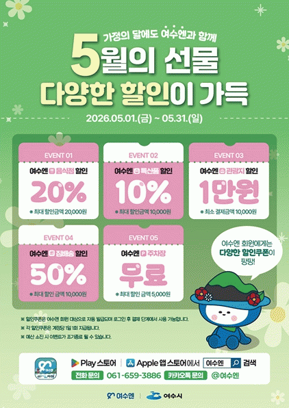 [´º½ºÅë ±è±¤¿ ±âÀÚ]¿©¼ö½Ã´Â 5¿ù °¡Á¤ÀÇ ´ÞÀ» ¸Â¾Æ ½º¸¶Æ®°ü±¤ ÅëÇÕÇ÷§Æû ¡®¿©¼ö¿£¡¯À» ÅëÇØ ÇÒÀÎ ÇÁ·Î¸ð¼Ç°ú °ÅºÏ¼±ÃàÁ¦ ¿¬°è À̺¥Æ®¸¦ ¿î¿µÇÑ´Ù°í ¹àÇû´Ù.